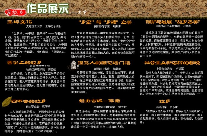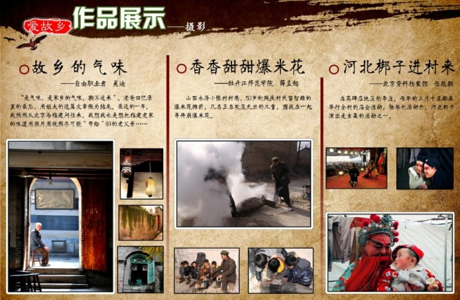 回应现实,作为“爱故乡”公益活动的组成部分,由正荣公益基金会支持,中国人民大学乡村建设中心、西南大学中国乡村建设学院、中国公共经济研究会乡村文明研究中心联合于2012年12月正式启动“爱故乡――发现故乡之美”图文征集公益活动,旨在通过记录故乡的容颜、生活和人物,发现故乡之美,反思当下社会,增强对故乡和乡村文化的认同,为那些坚守在乡村的人们呼吁,进而推动乡村的保护与文化的复兴,探索乡村重建的新的可能。