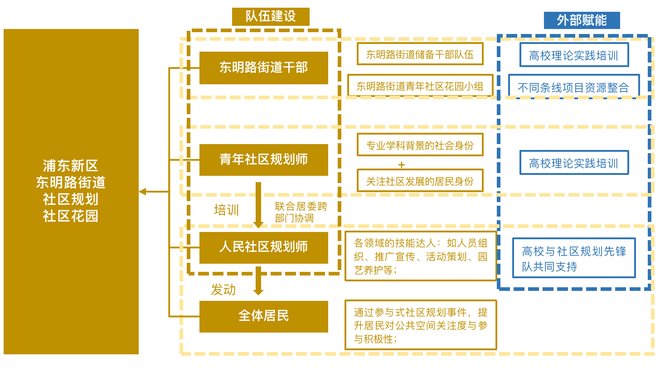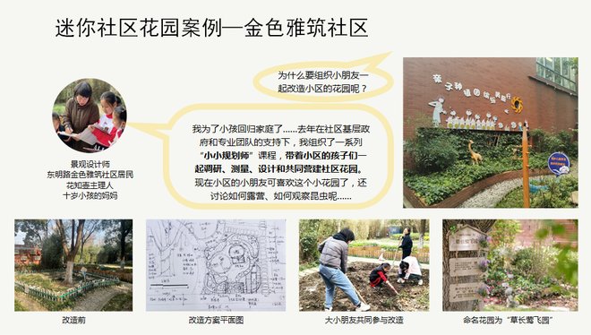 从干部到青年规划师,到人民社区规划师、小小社区规划师,虽然这样一个人员层次还达不到系统全面的规划,但他们希望将公众能参与的部分切实开放,让大家真正介入其中。在此过程,高校作为外部力量,也参与进来,包括同济、复旦、交大等。