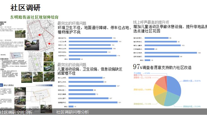他希望能把15分钟生活圈的规划变成参与式的社区规划,从for people,到跟大家在一起,和社区在一起。做工作坊就是典型的with people,希望这些提案最后是by people。目前东明路38个居民区都已经有或者正在创设自己社区发展目标和口号,他们要制定自己社区的三年行动计划参与提案。这样一来,自上而下的资源配置跟自下而上的民间提案就能联动起来。这些提案固定下来后,再通过参与社区规划来有效落实。