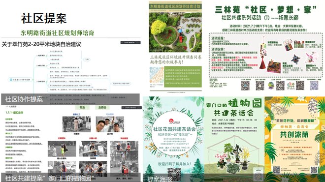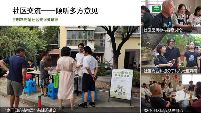 2020年,在东明路街道与同济大学、四叶草堂团队的合作引导下,东明路街道的居民们开始参与到社区花园的改造和建设中。当时,刘悦来和四叶草堂团队将社区花园与社区规划相结合,为街道做了个三年行动计划,覆盖街道的38个居民区。