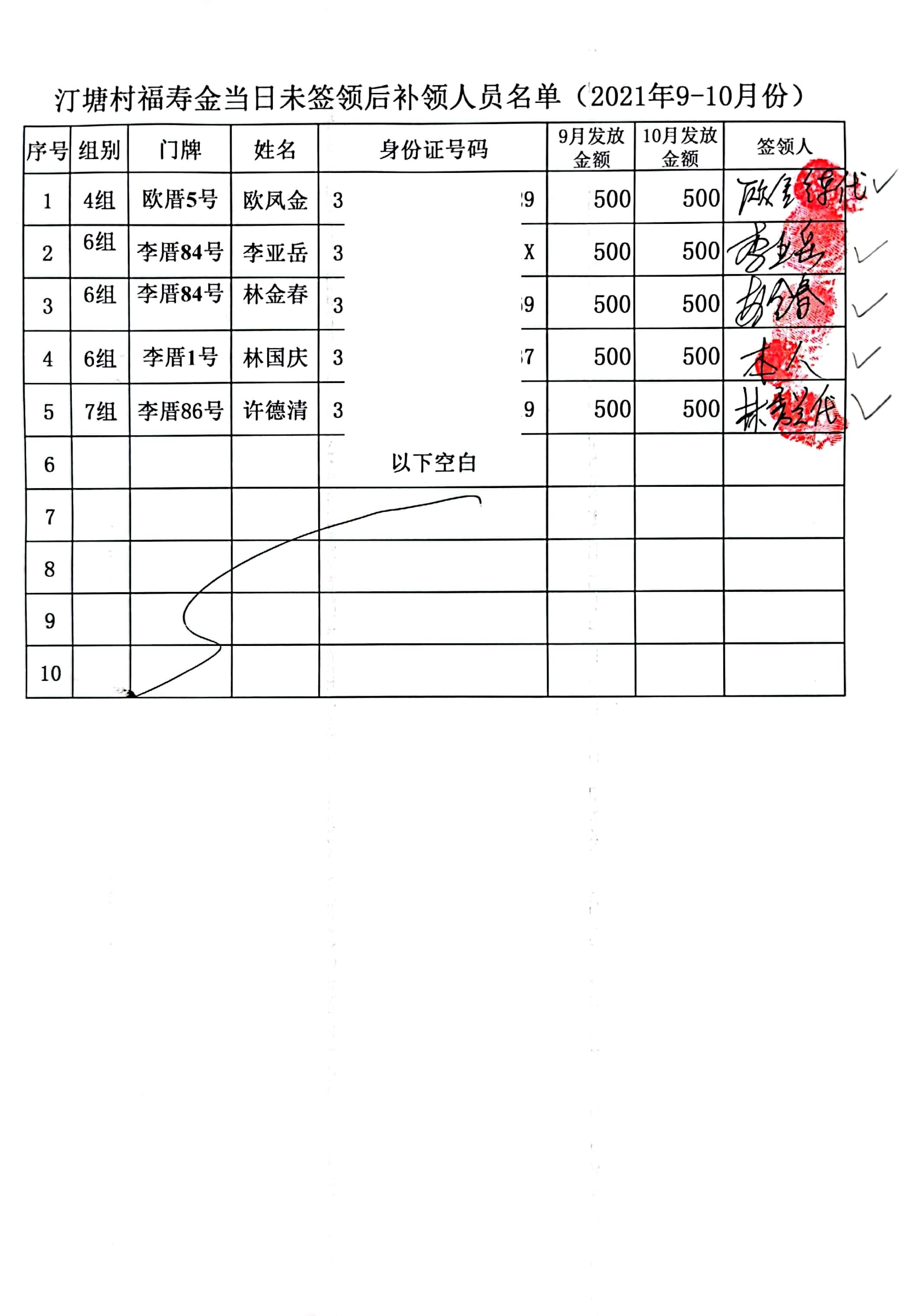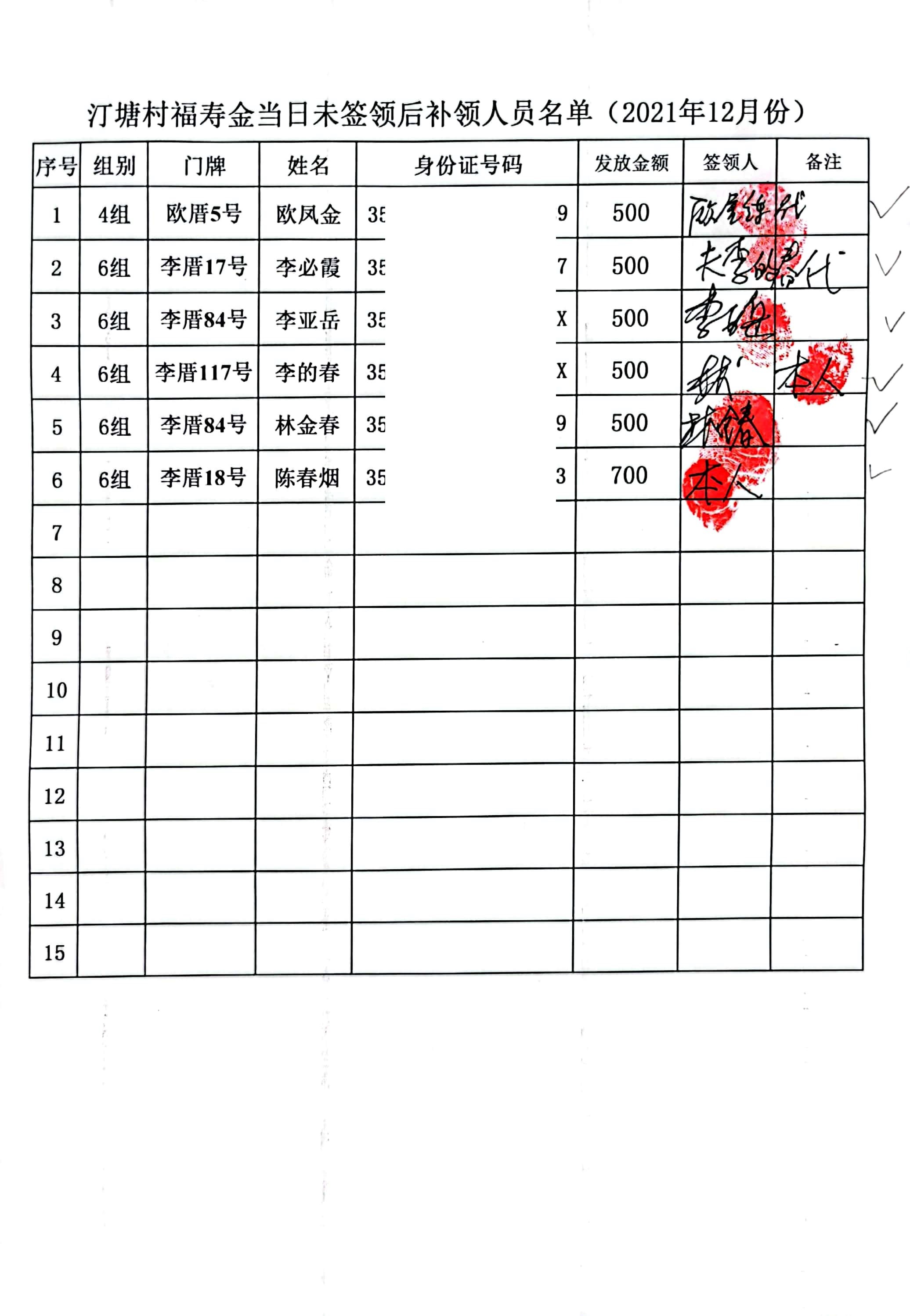 2021年1月-12月福寿金补领签收单公示如下: