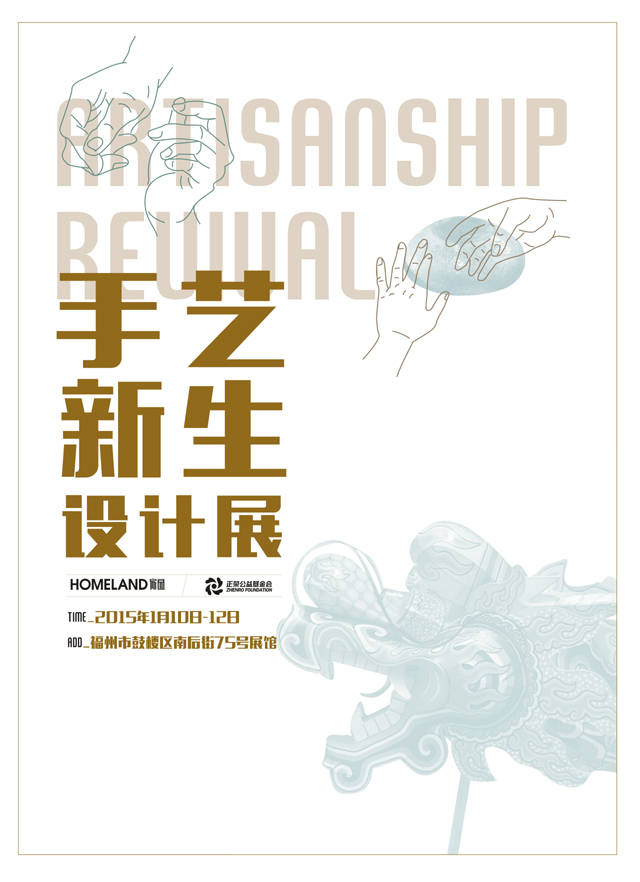 2014年9月,《HOMELAND家园》与正荣公益基金会联合发起了“手艺新生”公益项目,选择曾经承载福州人传统生活、如今日渐式微的6种老手艺:花灯、竹器、大漆、皮枕、福剪、陶艺,征集年轻设计师、艺术工作者与老手艺人配对合作,在了解传统手艺的基础上开发符合现代生活需求的审美和使用价值的产品。“手艺新生”公益项目发起后,从优秀的简历中最终确定了12位年轻设计师与艺术工作者参与到该项目中。目前,为期三个月的学习与再设计时间接近尾声,2015年1月10日“手艺新生”设计展将在三坊七巷开幕。