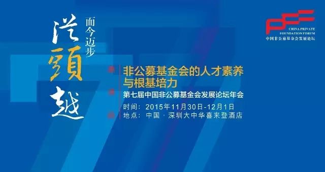 第七届中国非公募基金会发展论坛年会将于2015年11月30日-12月1日在深圳大中华喜来登酒店举行,年会的主题为“非公募基金会的人才素养与根基培力”。此次年会聚焦基金会一线项目官员在公益事业发展中的基础性地位,探讨处于公益价值链前端的中国非公募基金会应如何关注一线,注重一线人员的成长、进步和伙伴关系,引领公益行业整体素养的提升,取得更大的行业推动成就。年会将搭建平台,欢迎来自国内外的基金会、民间公益组织,以及政府部门、企业、学界、和媒体等进行广泛而深入的探讨和交流。