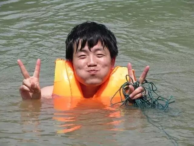 王同学拽着一根绳子畅游汉江