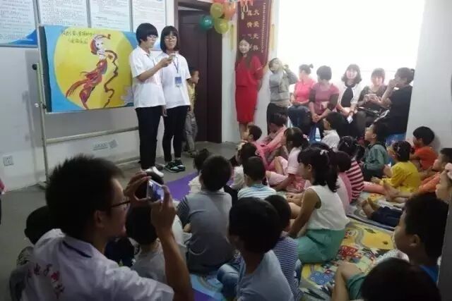 仁爱读乐园,大学生志愿者给孩子们做活动,她们有的是仁爱资助过留守儿童