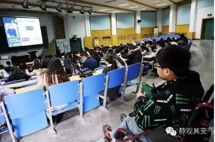 小赵在教室最后一排听着宣讲会