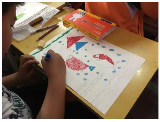 5月10日,安化麦田团队在中砥完小完成发放,在学校老师通力合作下,召集人糖糖逛街声情并茂地向孩子讲述了口袋上寄语祝福背后的故事,鼓舞了每一个孩子们。当地的老师还为孩子们上了一节以“鱼”为主题的美术课,第一次接触美术,当画笔在画纸上留下色彩的时候,孩子们显得异常的好奇和欣喜。有位老师笑着说道,孩子们拿到口袋,今晚只怕做梦都会笑出来。