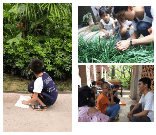 环节一:自然寻宝,通过寻宝任务,将参与者注意力焦距在社区自然环境上,发现生物多样。