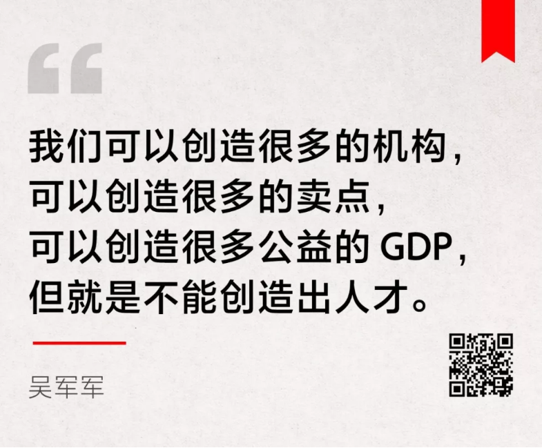 当下的一个情况是什么?我们可以创造很多的机构,可以创造很多的卖点,可以创造很多公益的 GDP,但就是不能创造出人才。这个就是人才的困境。我们有了理想,进入公益圈子却发现无处安放。