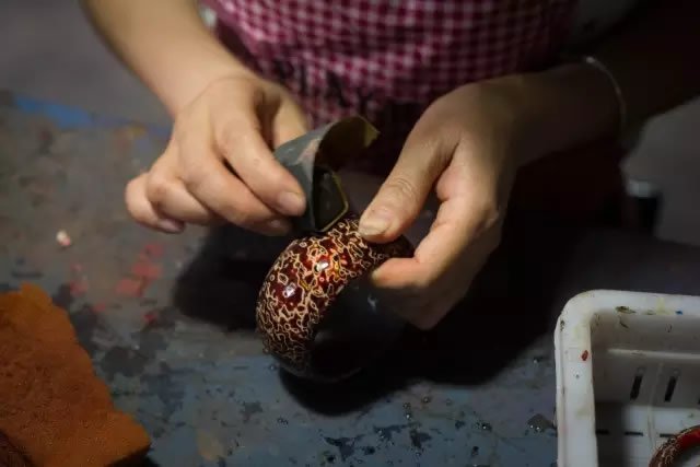 漆器的制作工序包括打底子、刮面漆、磨砂皮,连续多次上漆、入阴房、阴干、擦漆、再上漆、打磨等,经过25道工序,与其说大漆是繁琐的工艺,不如说是一种用时间等待的艺术。
