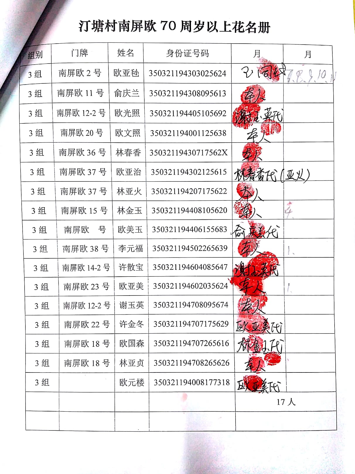 2017年12月福寿金发放情况如下。