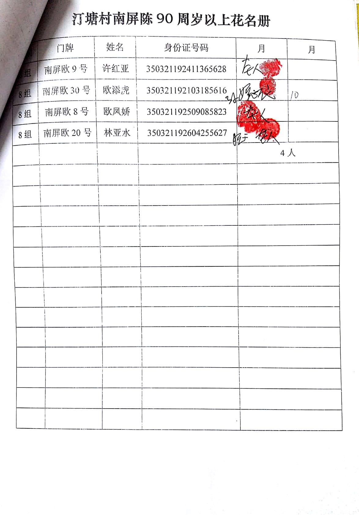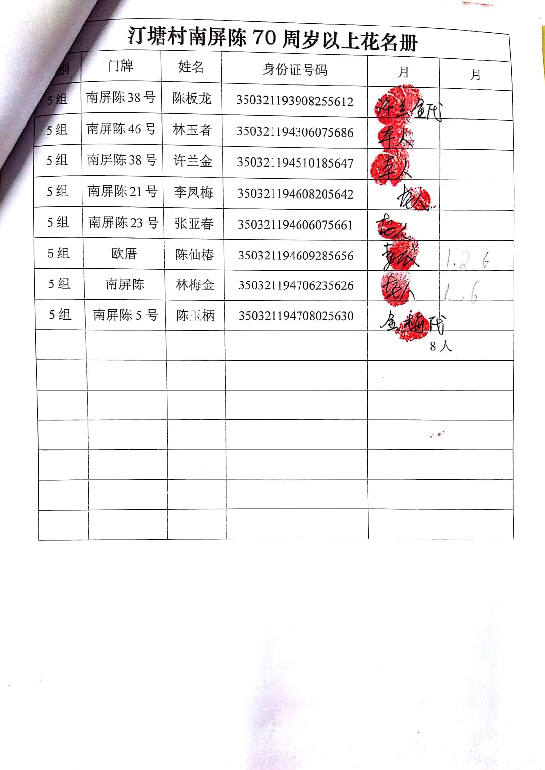 正荣福寿金自2014年设立,每月为汀塘村70周岁以上的老人发放300-600元不等礼金(70-79岁老人,一个月300元;80-89岁老人,一个月500元;90岁以上老人一个月600元。)