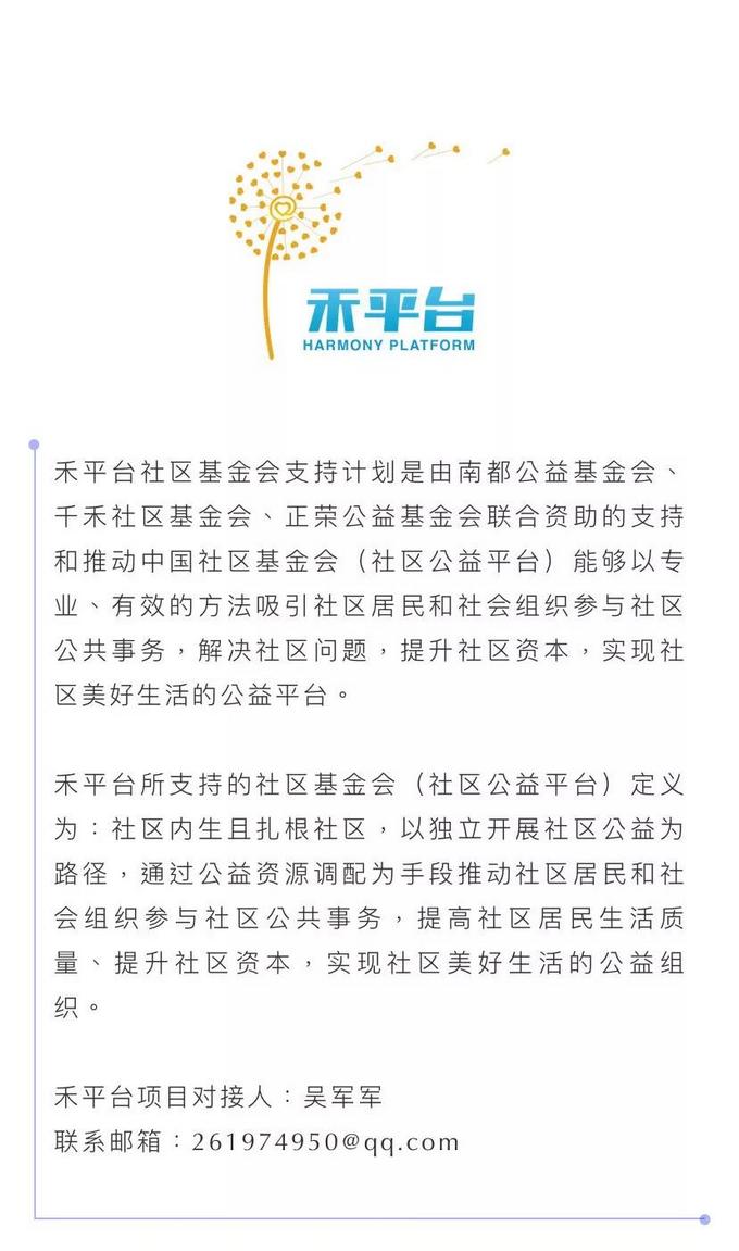 未来的社区基金会一定是平台,不仅支持项目,更多的是支持社区去发展自己的专项资金,盘活自己的资产,把社区的资产、资源资本化、服务项目化、人性化、专业化。思诚社区公益基金会的愿景是共建有爱、有礼、有信的幸福社区,使命是引进外部资源,激发社区内部活力,实现社区的可持续和谐发展。