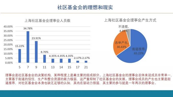 第三种是介入干预型。社区基金会在上海大体来说,是在街道的自治办下面。这样有的社区基金会就是自治办的领导科长或者说自治办直接派一个社工介入运营。