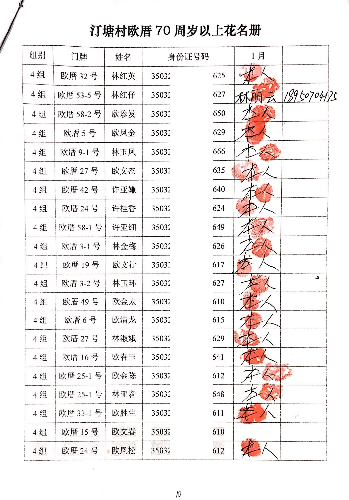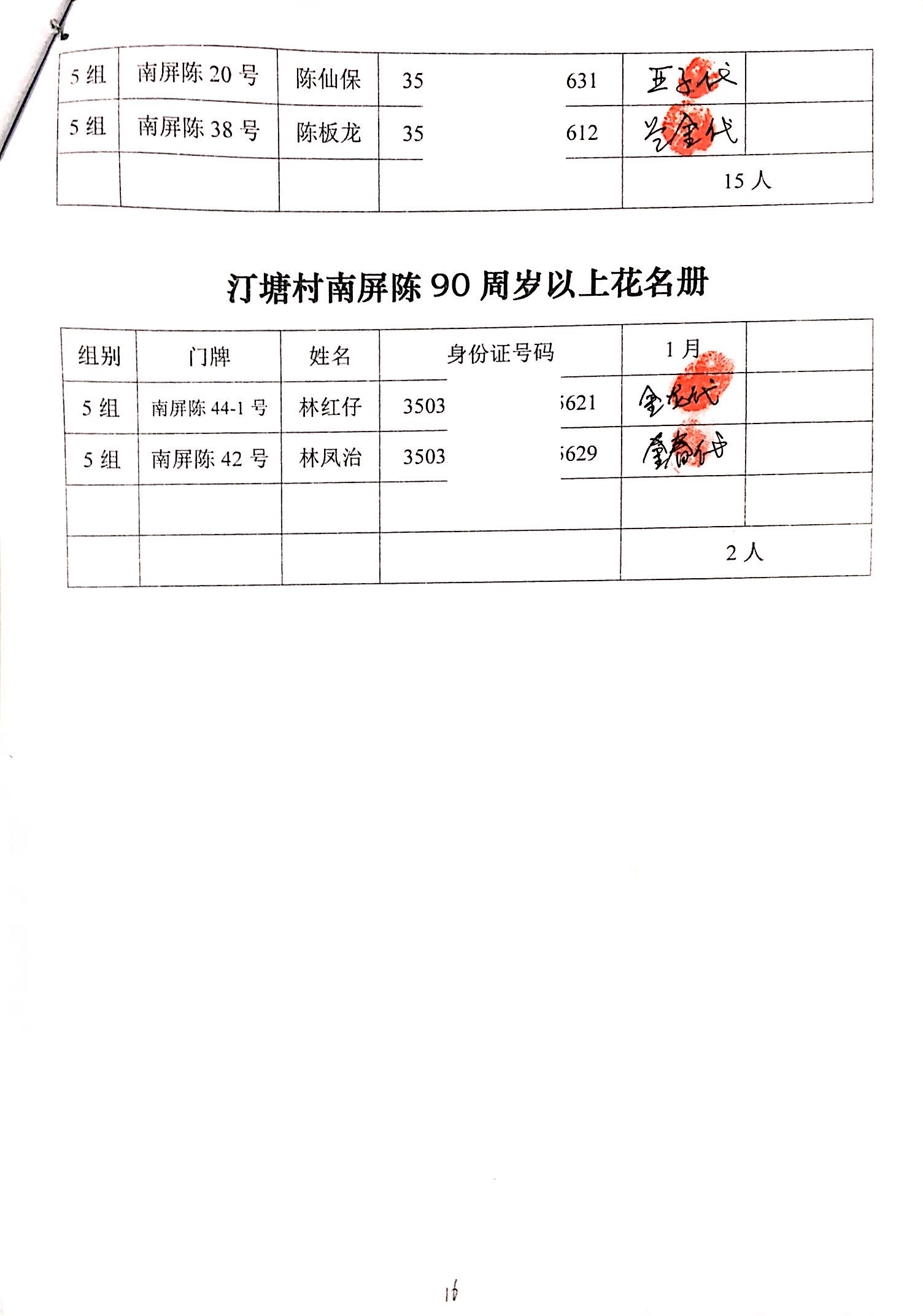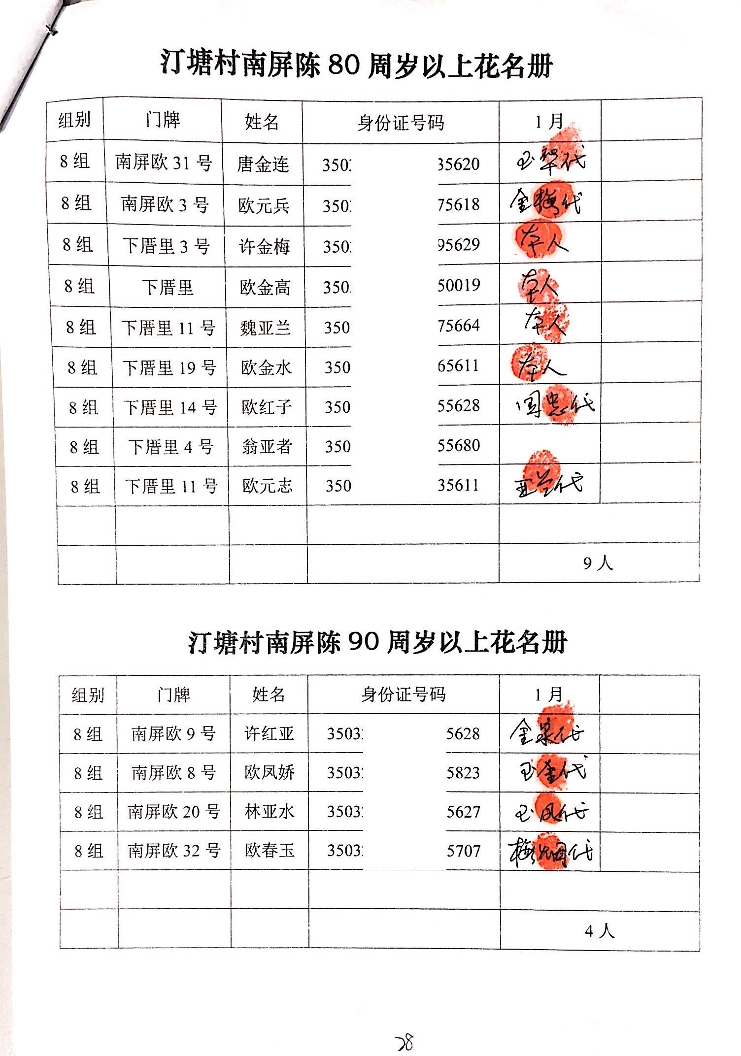2020年1月,项目为汀塘村70周岁以上的老人发放400-1000元不等礼金(70-79岁老人,一个月400元;80-89岁老人,一个月600元;90-99岁老人,一个月700元;100岁及以上,一个月1000元。)