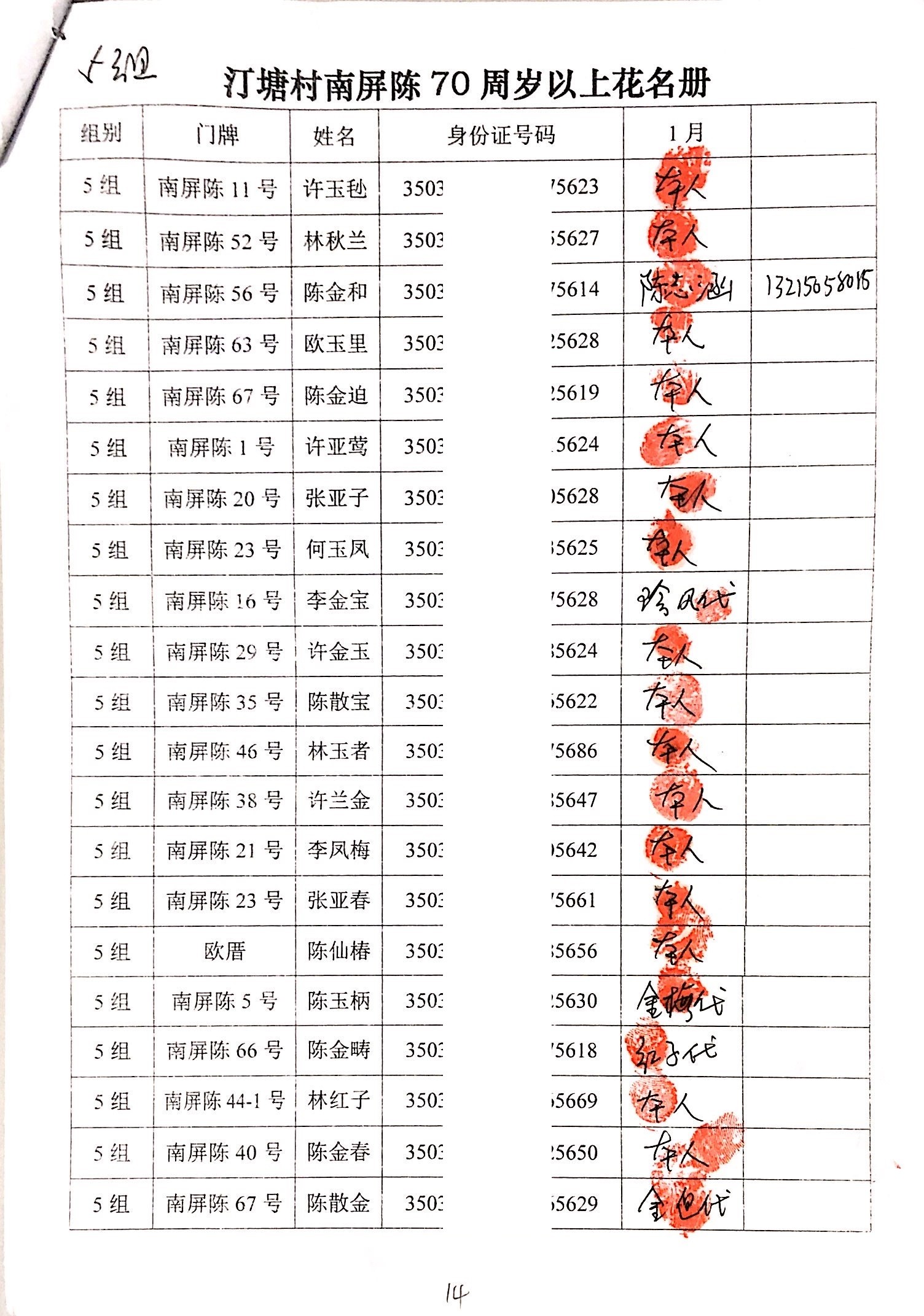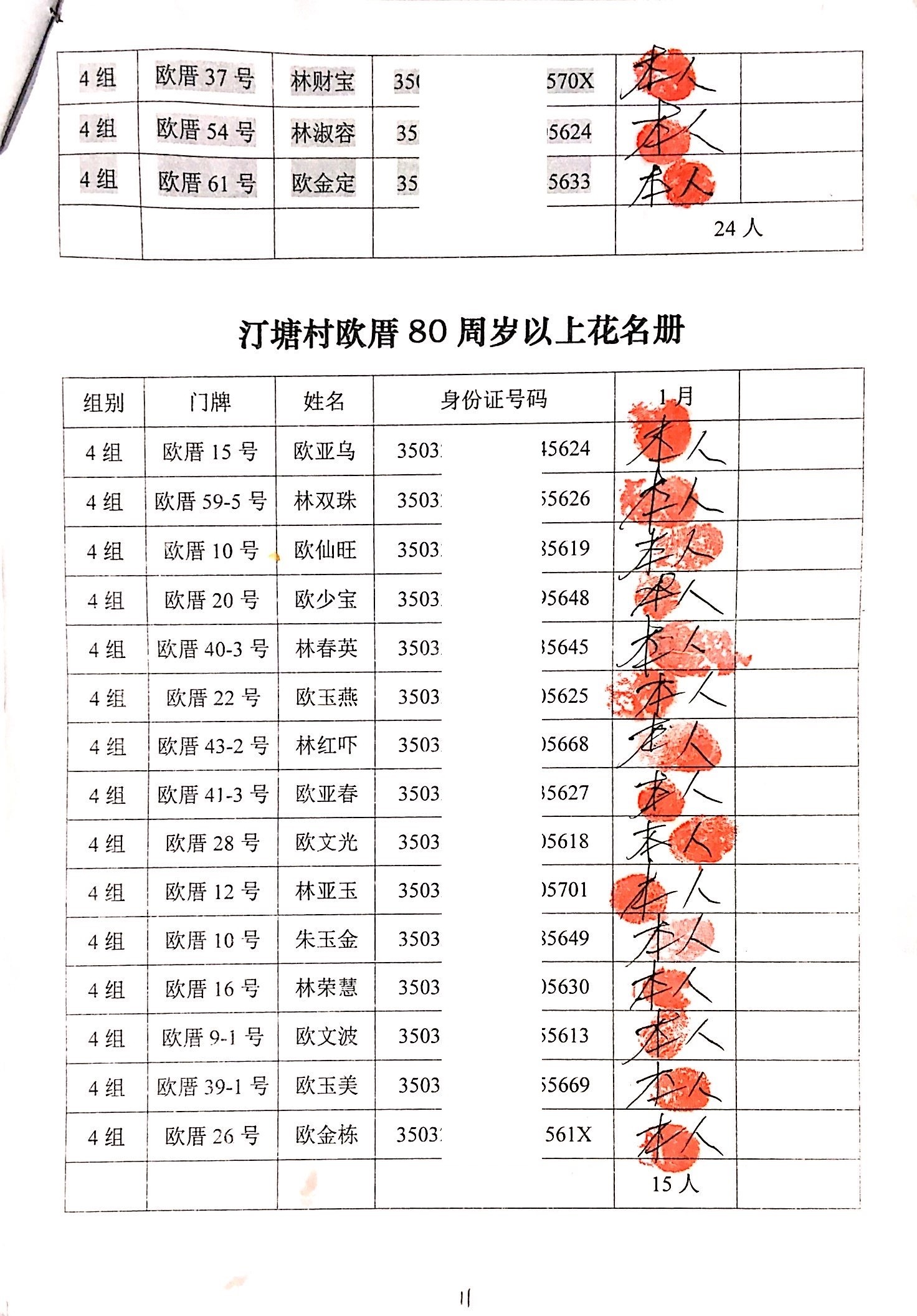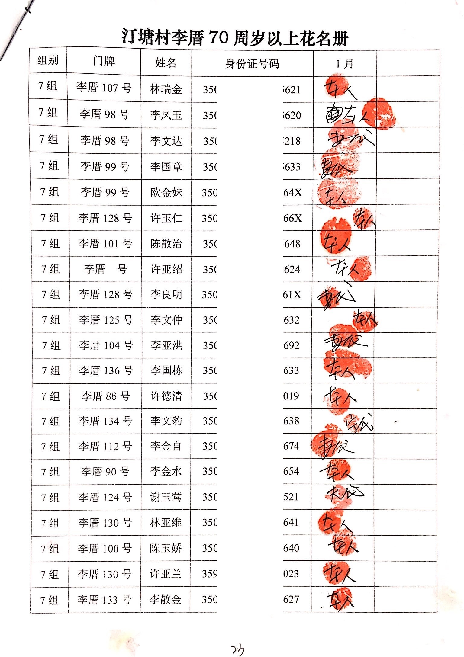 2020年1月,项目为汀塘村70周岁以上的老人发放400-1000元不等礼金(70-79岁老人,一个月400元;80-89岁老人,一个月600元;90-99岁老人,一个月700元;100岁及以上,一个月1000元。)