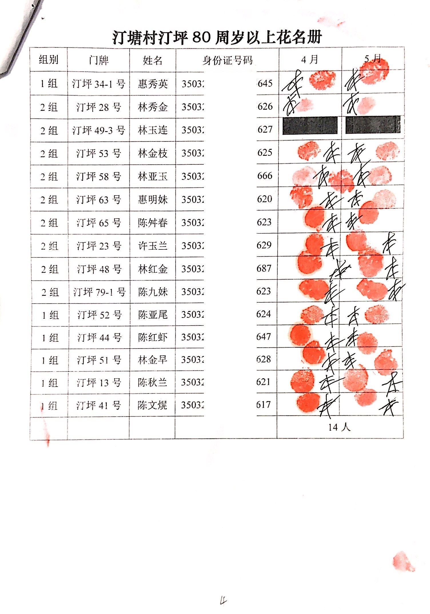 2020年福寿金发放情况公示(2、3月)