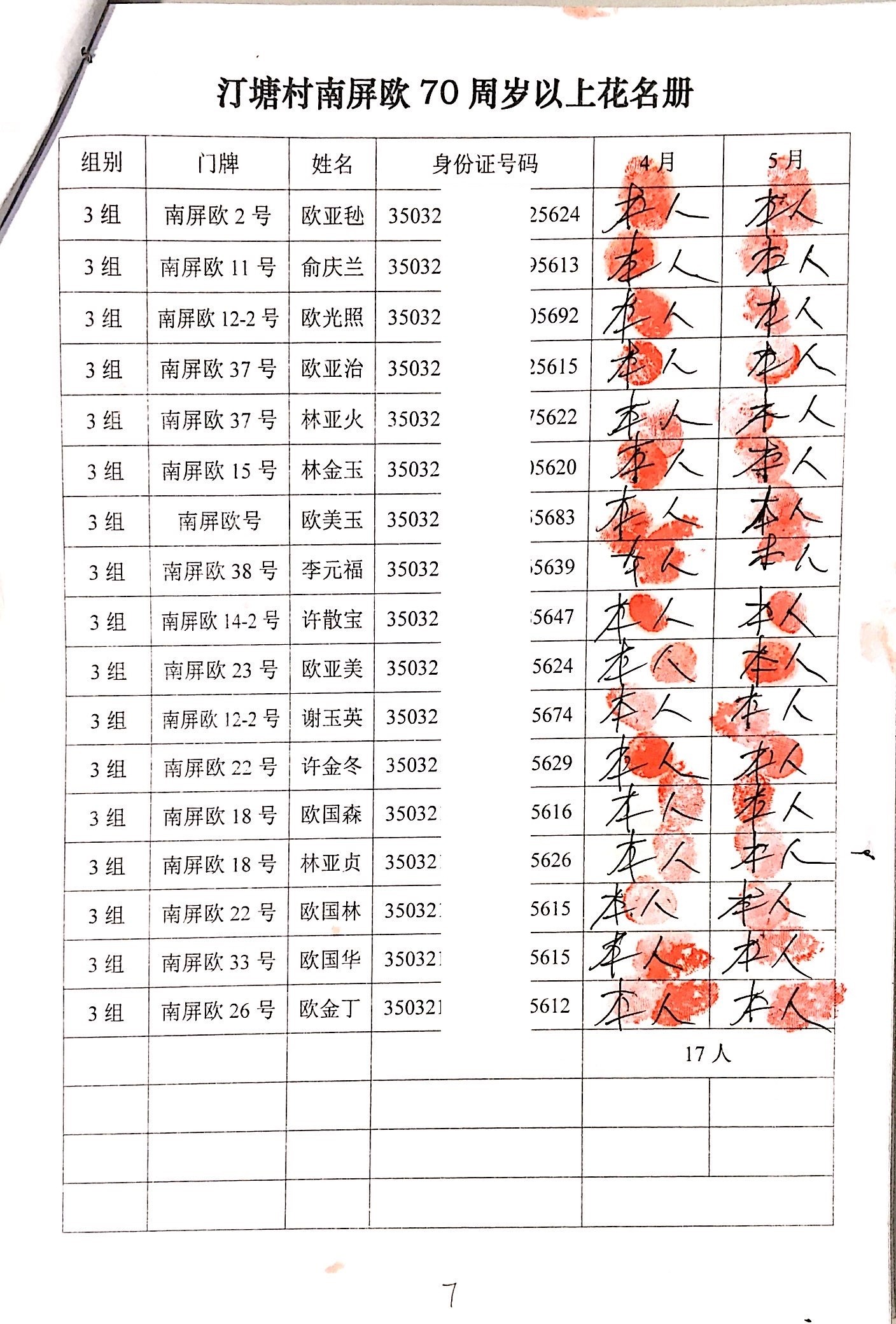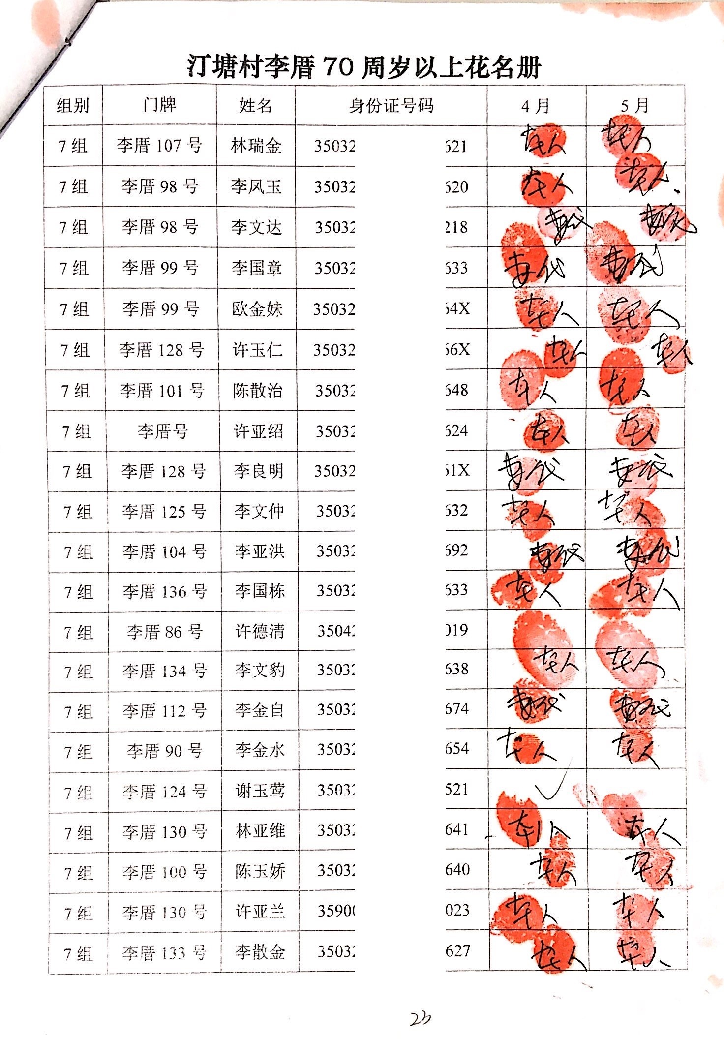 2020年2、3月,项目为汀塘村70周岁以上的老人发放400-1000元不等礼金(70-79岁老人,一个月400元;80-89岁老人,一个月600元;90-99岁老人,一个月700元;100岁及以上,一个月1000元。)