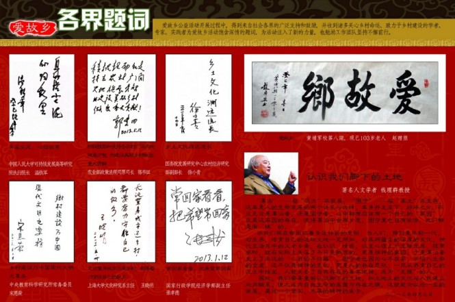 2013年,在社会各界的支持下,活动主办方通过举办乡土文化学术会议,爱故乡高校宣讲、各种类型的公众宣传,以及“爱故乡——发现故乡之美”图文征集活动等,有力地推动了爱故乡理念的传播,在不同层面上形成了关注故乡、保育乡土文化的良好社会氛围。