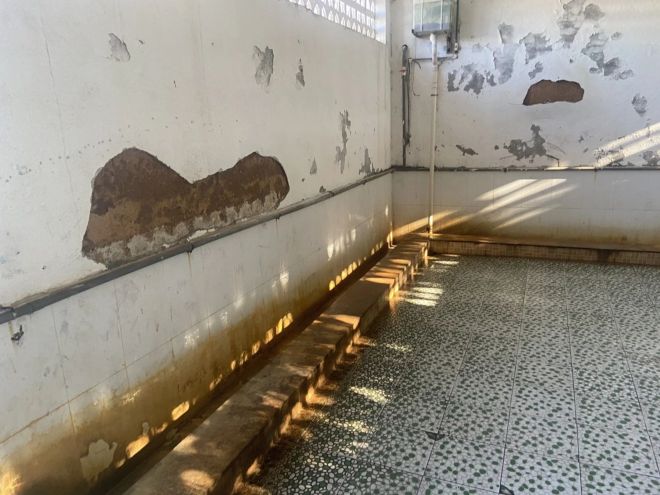 由于条件限制,先锋小学的厕所多年未修缮,且没有遮挡设施。校园没有专门的校工负责打扫厕所卫生,平时都是由学生轮流值日,自行打扫,难以保证厕所的清洁和卫生标准。
