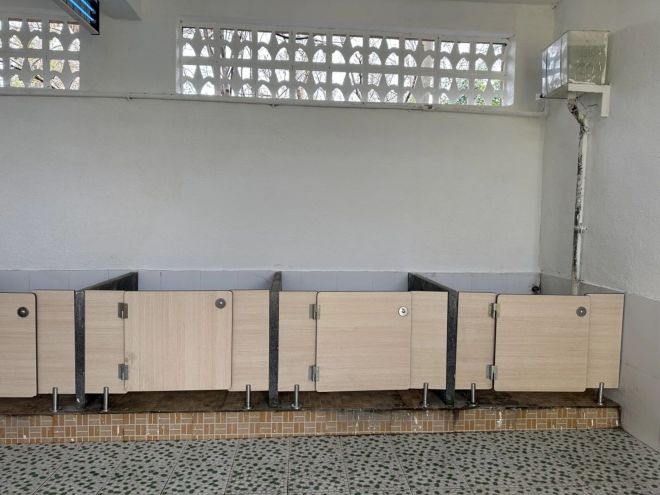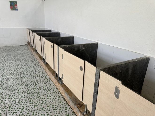 在与校方沟通后,基于孩子们最真实的需求,我们针对学校的实际情况确定了厕所改造方案:对厕所墙壁进粉刷,让原本昏暗的空间变得洁白明亮;安装除臭器和紫外线消毒灯,去除厕所内的异味,保障厕所的卫生;为每个蹲位安装了门板,筑起一道守护隐私的屏障。