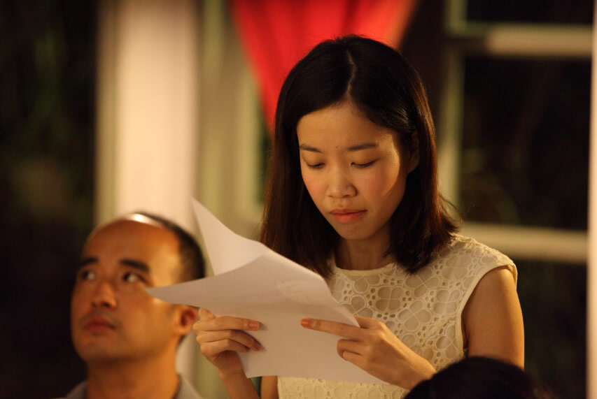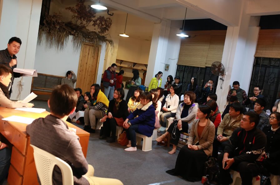 2013年9月,去墨剧坊迎来了自己的第一次公开演出,剧目是《P.S.相亲》。这是一部取材于中国社会年轻一辈盛行的相亲现象的环境话剧,演出场所是福州市中心的某家“相亲圣地”的咖啡馆。回想起第一次站上舞台,换上服装,画上妆容,在生活里变成另一个人,小马说,小伙伴们是既激动又紧张,甚至有人很亢奋,“我们经过了两个多月的演员培训与后期彩排,9月第一次面对观众,毕竟演员都是从6月份招进来的,而且‘相亲’是实景话剧,我们和观众也是零距离的、最自然的状态呈现,所以十分紧张,但最后戏至高潮,咖啡馆里的其他客人也被吸引过来,并在最后给我们掌声,第一次能做到这样,我们真的既庆幸又感动”。